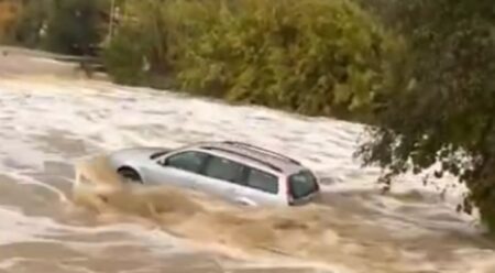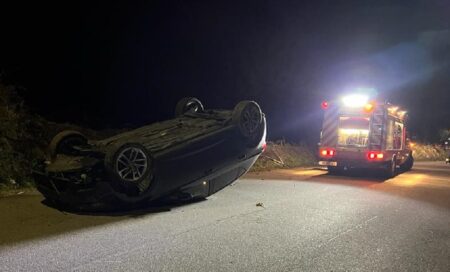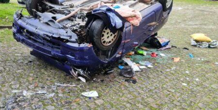 Ainda derrubou uma placa e um poste de linhas telefónicas.