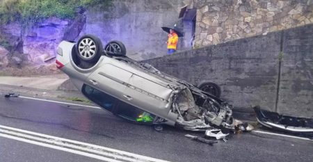 Veículo em trangressão capotou.