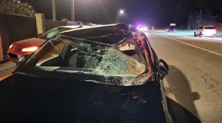 Imagem mostra o estado em que ficou o primeiro veículo que embateu no animal.