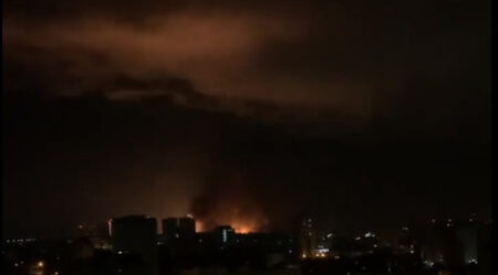 Ao cair da noite, começaram a ouvir-se fortes explosões na zona ocidental da capital ucraniana.