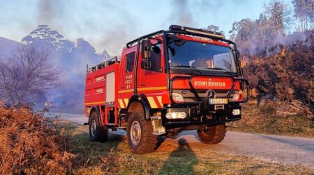 Cerca de duas dezenas de bombeiros no combate às chamas.