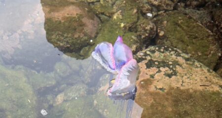 A caravela-portuguesa não se move – flutua à superfície das águas, empurrada pelo vento, com os tentáculos pendentes.