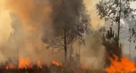 Dezenas de hectares de floresta destruídos.