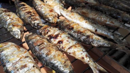 Há caldo verde, febras, sardinha assada e arroz doce.