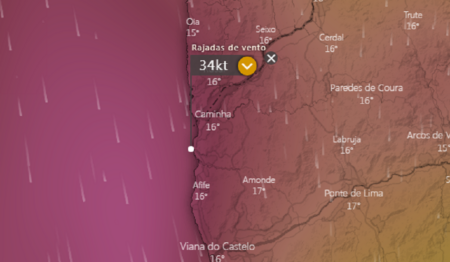 Rajadas de vento poderão chegar aos 100 Km/h nas terras altas.