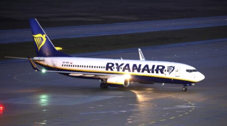 Num voo de Londres até Lisboa.