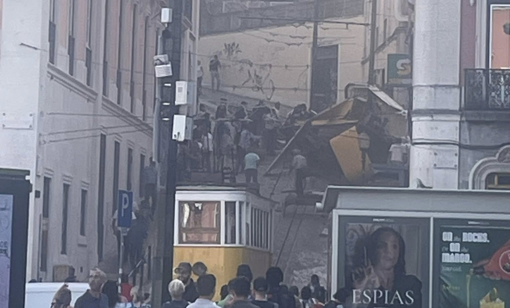 O elevador, que subia para o miradouro de São Pedro de Alcântara, desgovernou-se, recuou e embateu num prédio ao descer a rua.