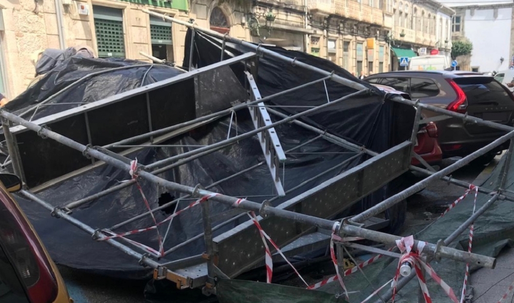 Um ferido foi o resultado da queda de um andaime, durante a tarde desta quinta-feira, na rua Augusto Losada, em Tui, concelho galego vizinho de Valença.