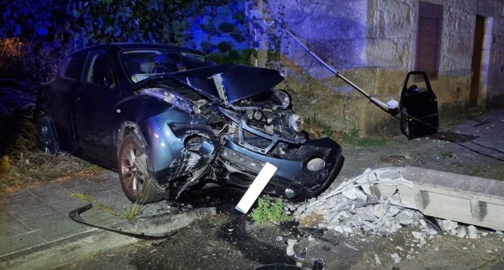 Uma mulher ficou ferida durante a madrugada desta segunda-feira após a viatura que conduzia ter entrado em despiste, seguido de colisão com poste de eletricidade, na estrada PO-404 em Paramos, Tui, na Galiza.