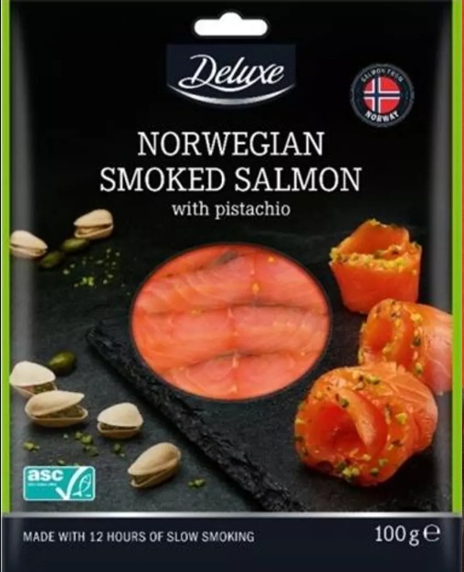 Segundo o jornal Atlántico, foi detetada em embalagens de salmão fumado com pistácio da marca Deluxe, com data de validade 18 de abril de 2026.