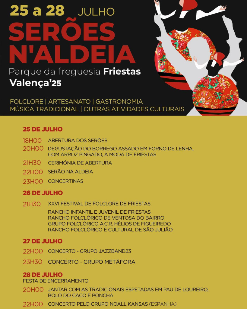 Realiza-se no próximo fim-de-semana, de sexta-feira a segunda-feira, em Friestas, Valença, mais uma edição dos Serões N’ Aldeia.