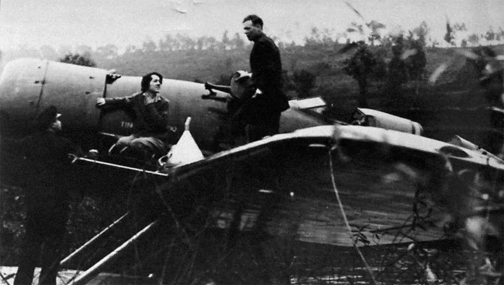 Charles Lindberg com a esposa e o hidroavião imobilizados no rio Minho, em 1933, na freguesia de Friestas