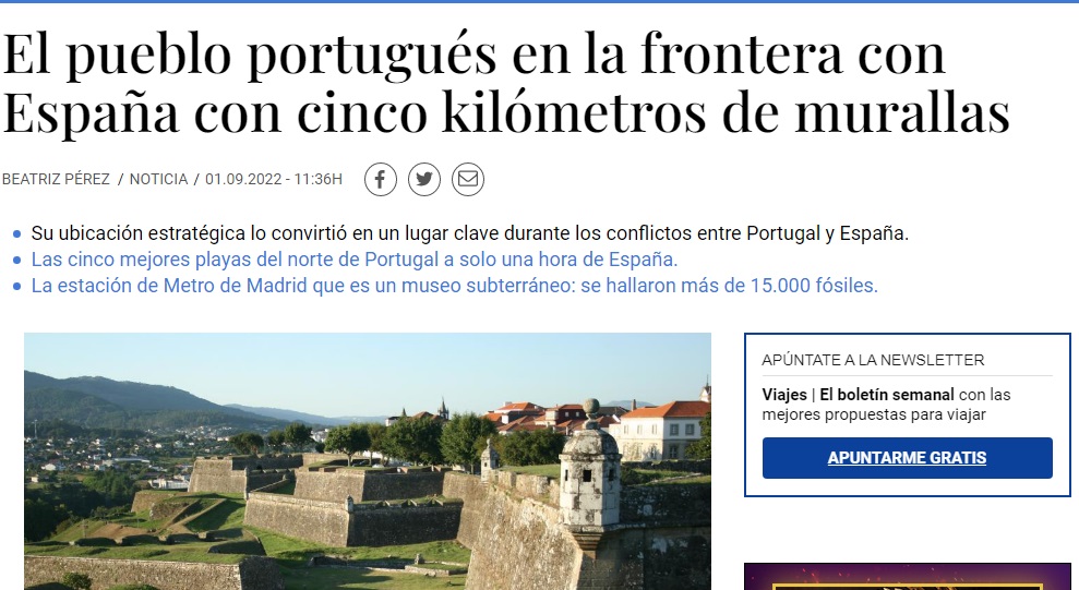 Na secção Viajes, a edição online deste jornal dá destaque a Valença, no distrito de Viana do Castelo.