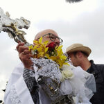 Nem a chuva miudinha demoveu a enorme multidão que ao final da tarde desta segunda-feira se concentrou no Parque de Nª Srª da Cabeça, em Valença. Ora a Fé… ora a curiosidade prendiam o pé a centenas de pessoas que quiseram assistir ao Lanço da Cruz. Uma tradição que todos os anos ali se repete na segunda-feira após o domingo de Páscoa. Uma tradição que, consideram portugueses e galegos, “já vai além disso… É um símbolo de união! De humanidade! De carinho entre estes dois povos cada vez mais unidos”.