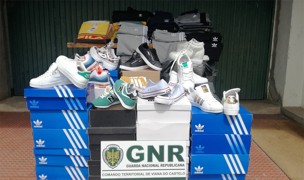 A apreensão foi feita durante uma ação de fiscalização rodoviária. Foram identificados quatro homens e uma mulher, com idades compreendidas entre os 27 e os 42 anos. “Circulavam em carrinhas de transporte de mercadorias, transportando nos compartimentos de carga, vários artigos contrafeitos devidamente acondicionados em caixas”, descreve a GNR.