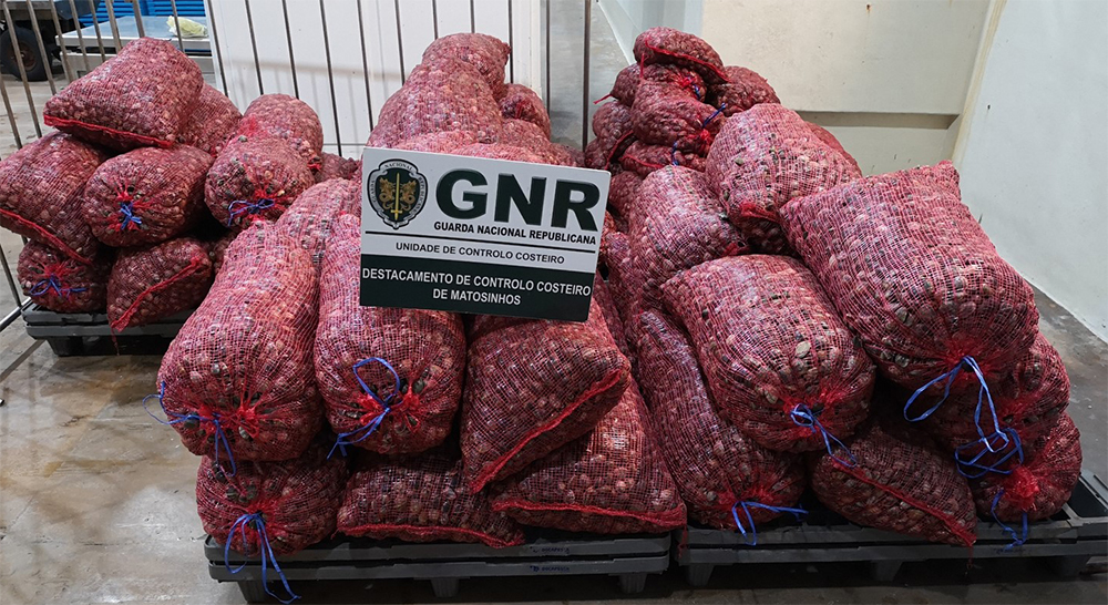 A GNR apreendeu este domingo, em Valença, mais de duas toneladas de amêijoa, com o valor presumível de 19.500 euros.