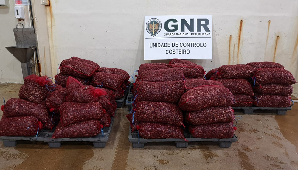 A GNR, através do do Destacamento de Controlo Costeiro de Matosinhos apreendeu esta segunda-feira em Valença 1 900 quilos de amêijoa-japonesa com o valor presumível de 17 100 euros.