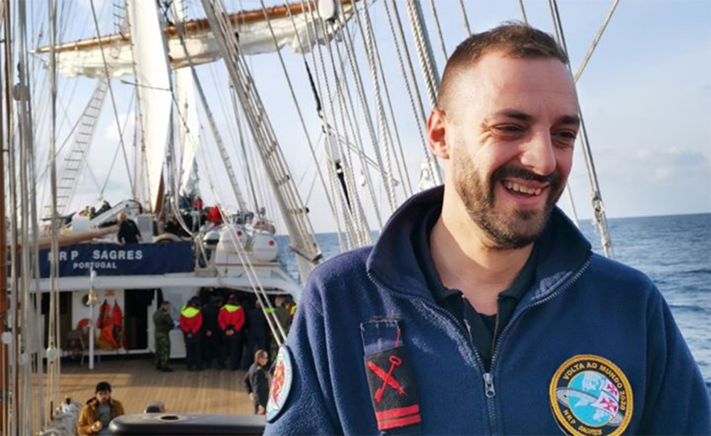 Chama-se Pedro Lima. É cabo a Marinha Portuguesa… e é de Valença. Partiu há dias numa viagem que certamente vai ficar-lhe marcada para toda a vida. É um dos 142 militares a bordo do Navio-Escola Sagres partiu de Lisboa, no passado dia 5 de janeiro, para a Grande Viagem de Volta ao Mundo que terá a duração de 371 dias e assinala os 500 anos da viagem de circum-navegação de Fernão de Magalhães.