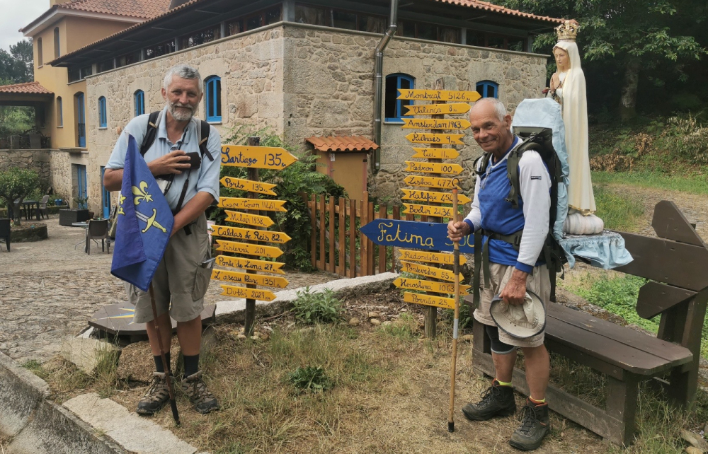 Patrick e Jean. São dois amigos de nacionalidade francesa, “na casa dos 60 anos de idade”, que há mais de uma semana iniciaram uma aventura: partiram de Fátima, a pé, rumo a Santiago de Compostela.