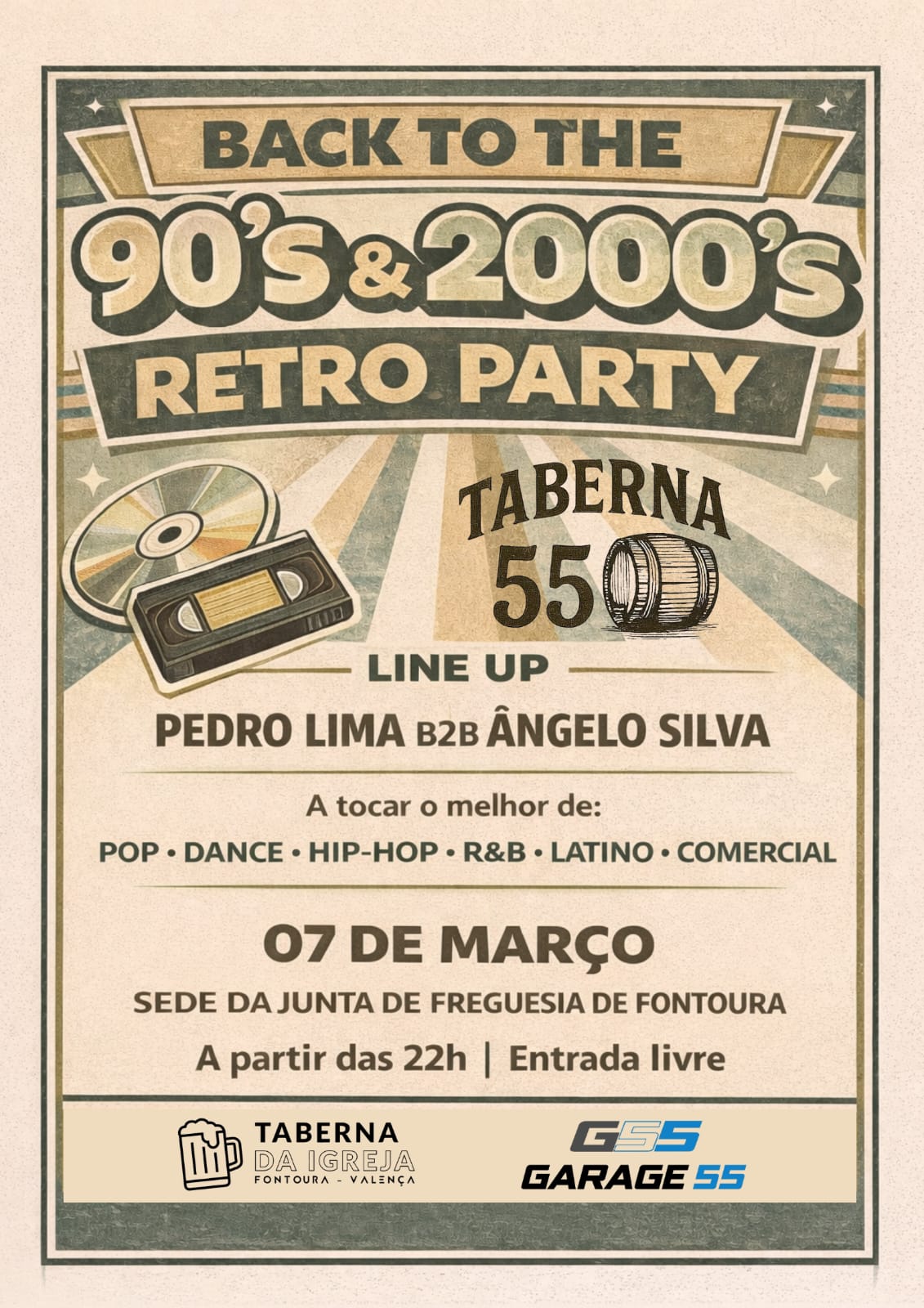 A sede da Junta de Freguesia de Fontoura vai ser palco, no próximo dia 7 de março, de uma festa intitulada Back to the 90’s & 2000’s.