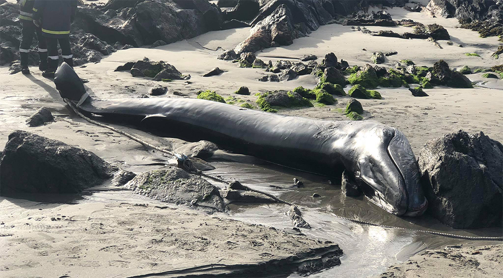 Uma baleia-comum, com cerca de seis metros de comprimento e 2,5 toneladas de peso deu à costa ao final da tarde desta terça-feira, na Praia Norte, em Viana do Castelo.