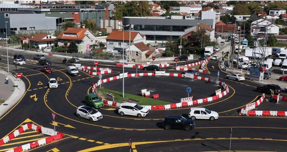 É que a nova sinalização na faixa de rodagem obriga os condutores a seguir mesmo na faixa correta, dado que existe uma linha contínua no interior da rotunda.